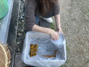 渋柿ですが、お酒につけて渋抜きをしてみました😋